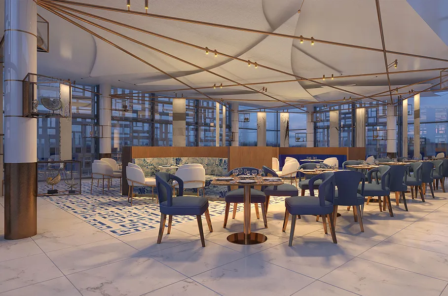 AL MOUJ MUSCAT A modern take on a traditional bakery, emphasizing Omani coastal charm Al Mouj Muscat Sunlit interiors dance with hanging greenery, where breezy open spaces and earthy textures create the perfect blend of eco-conscious design and laid-back happiness operator Private type Muscat Location Oman
